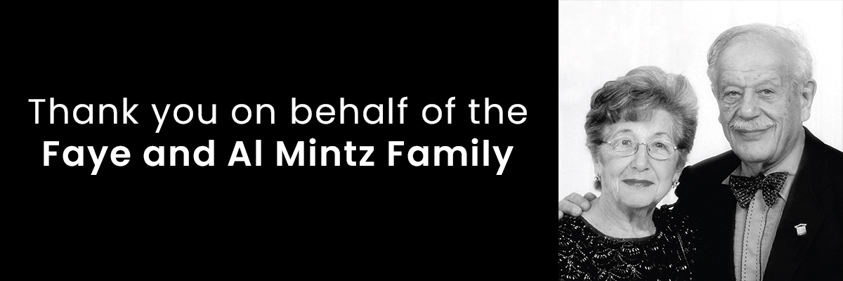 Al and the late Faye Mintz were lifelong supporters of Baycrest. When Faye passed away in February 2011, all memorial donations were directed to Baycrest, where she had been an active volunteer for many years. As devoted parents and grandparents, Faye and Al led by example, giving generously to their community and family throughout their lives. As part of the Baycrest family, their hope is that their legacy will inspire others.